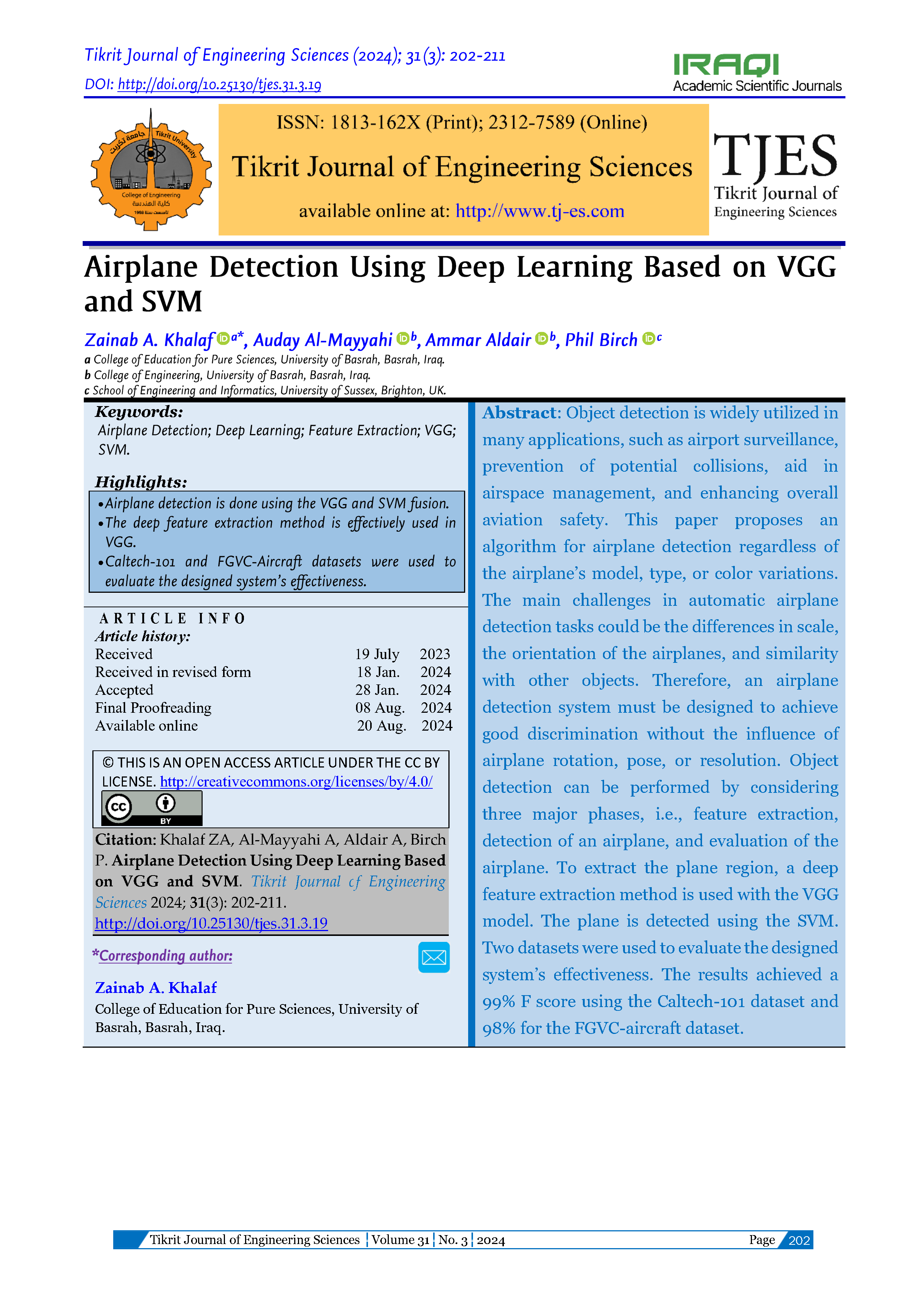 Airplane Detection Using Deep Learning Based on VGG and SVM