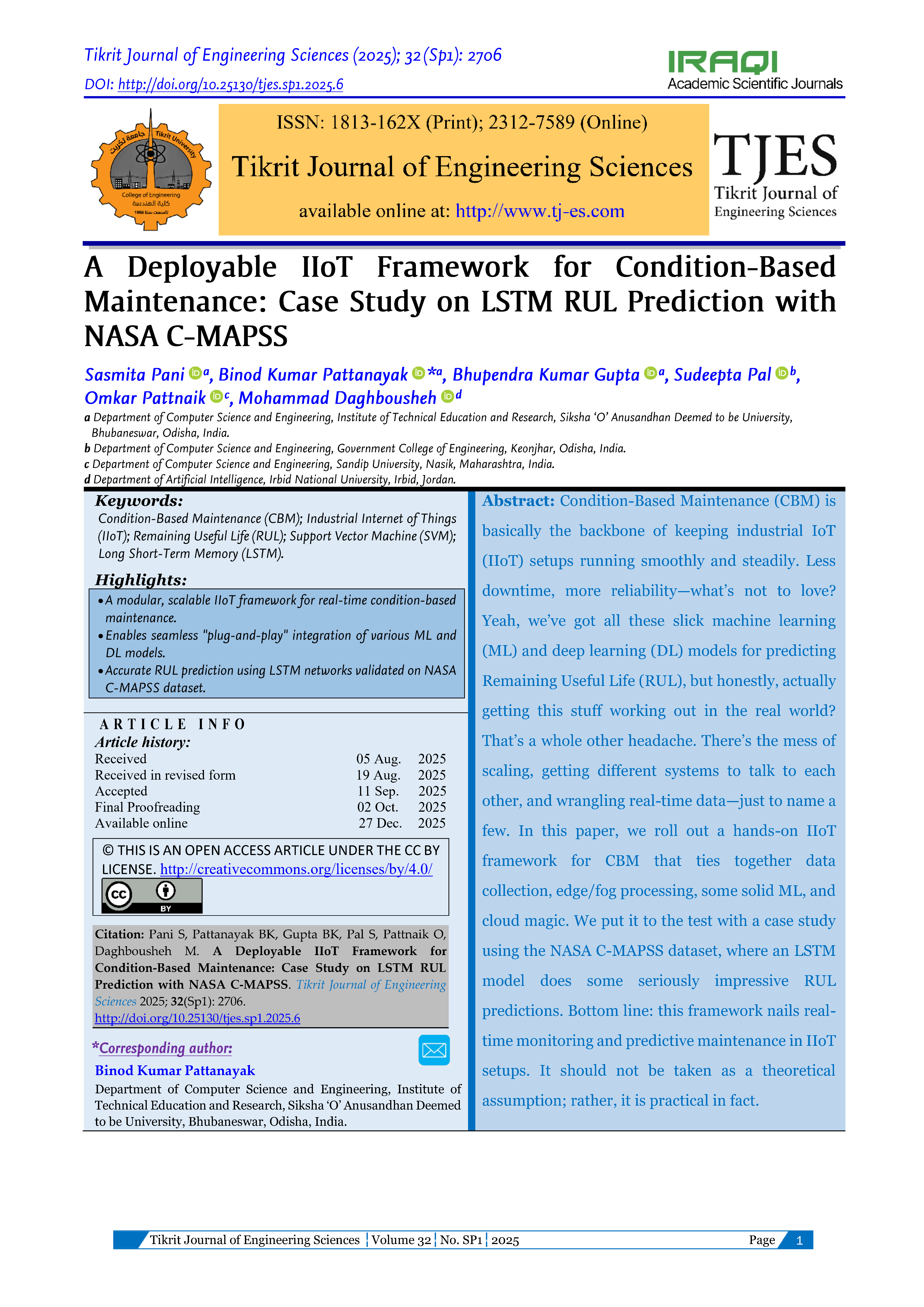 Kane AB, Smith M, Kumar J. Integrating Big Data Analytics and Machine Learning for Predictive Maintenance within Industrial IoT Frameworks. IEEE Transactions on Industrial Informatics 2024; 20(3):2436–2450.