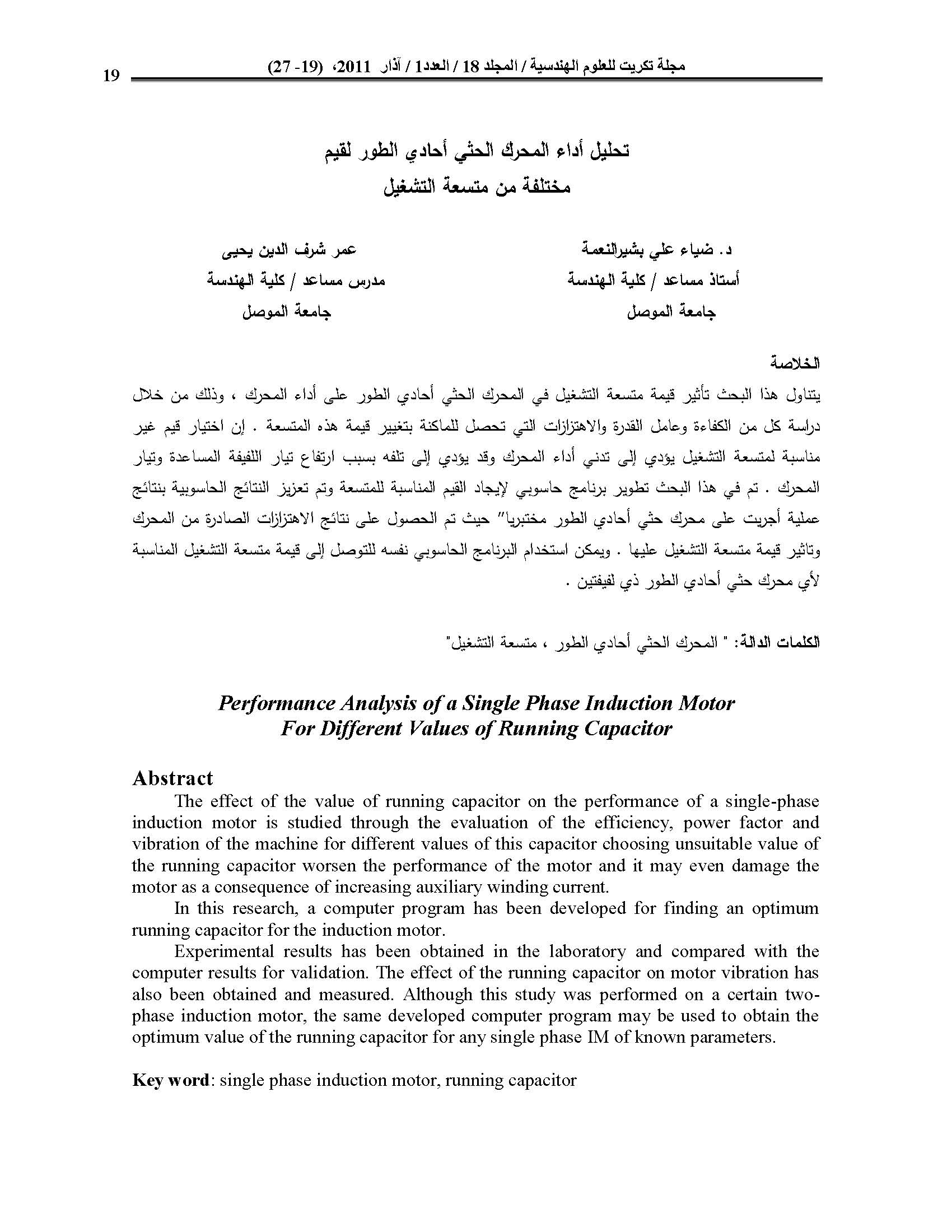 - Mahdi Alshamasin “Optimization of the Performance of Single Phase Capacitor–Run Induction”.Americal Journal of applied Sciences 6(4), 745-751, Jordan, 2009. DOI: https://doi.org/10.3844/ajassp.2009.745.751