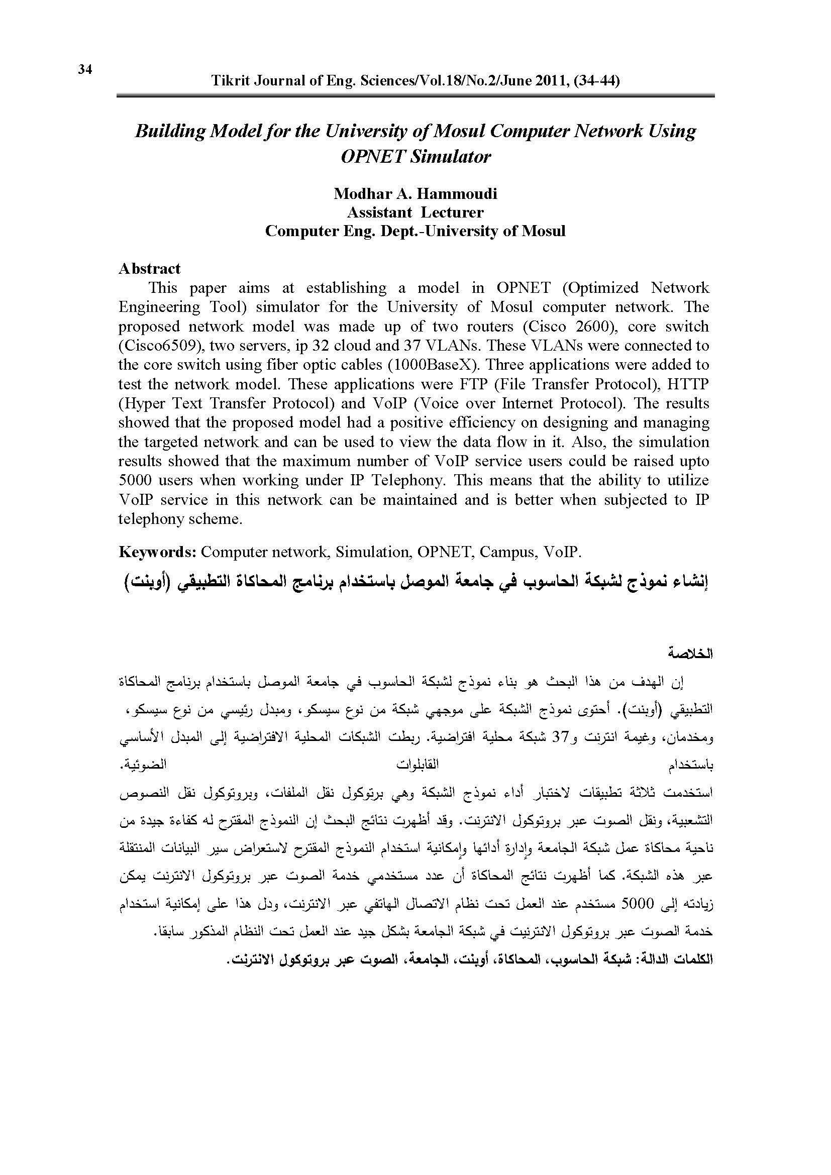 Building Model for the University of Mosul Computer Network Using OPNET Simulator