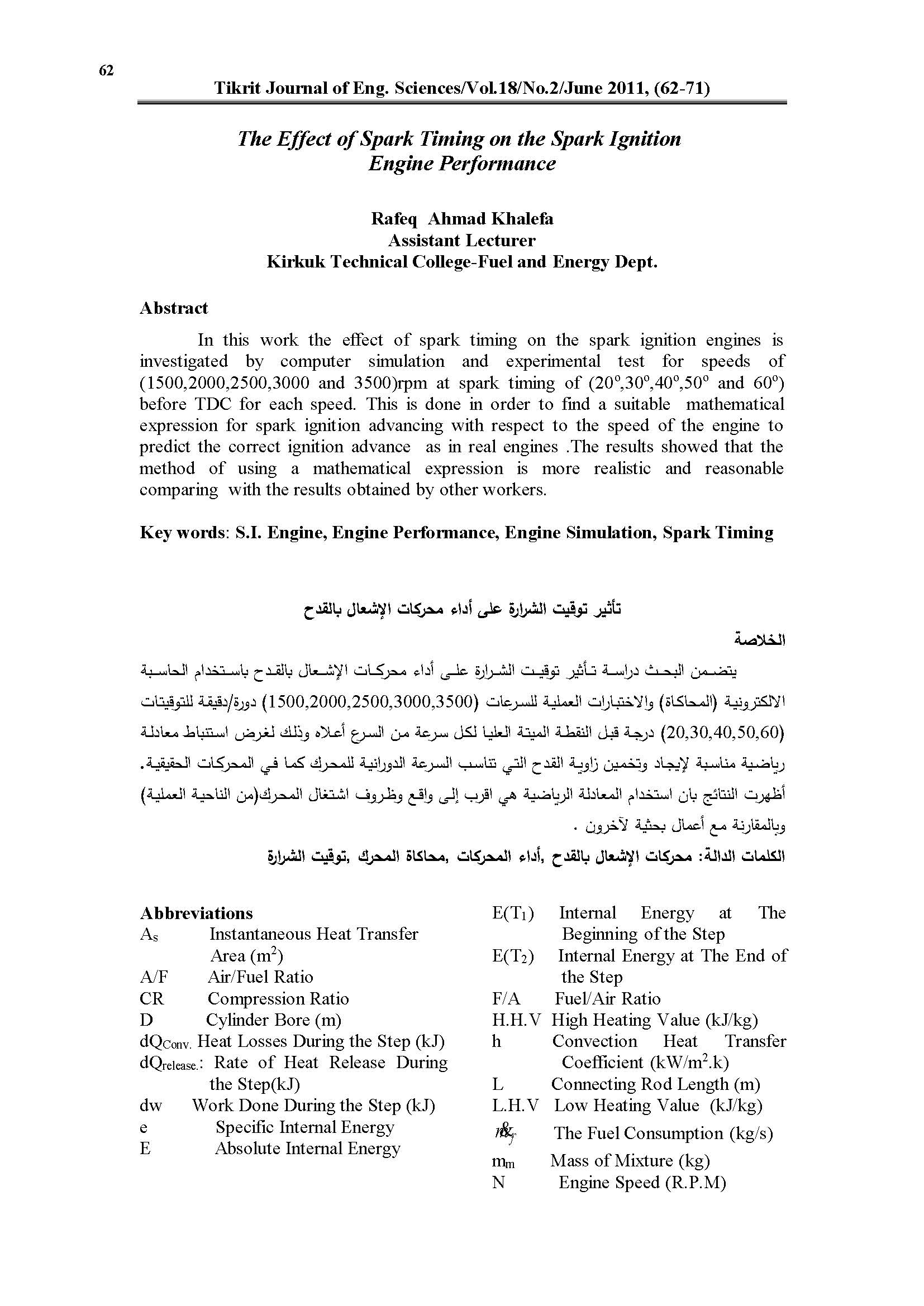 موسى مصطفى ويس كهية “دراسة تأثير درجة حرارة الشحنة الداخلة على أداء وملوثات محرك احتراق داخلي يعمل بالشرارة”رسالة ماجستير –كلية الهندسة-جامعة تكريت-2005.