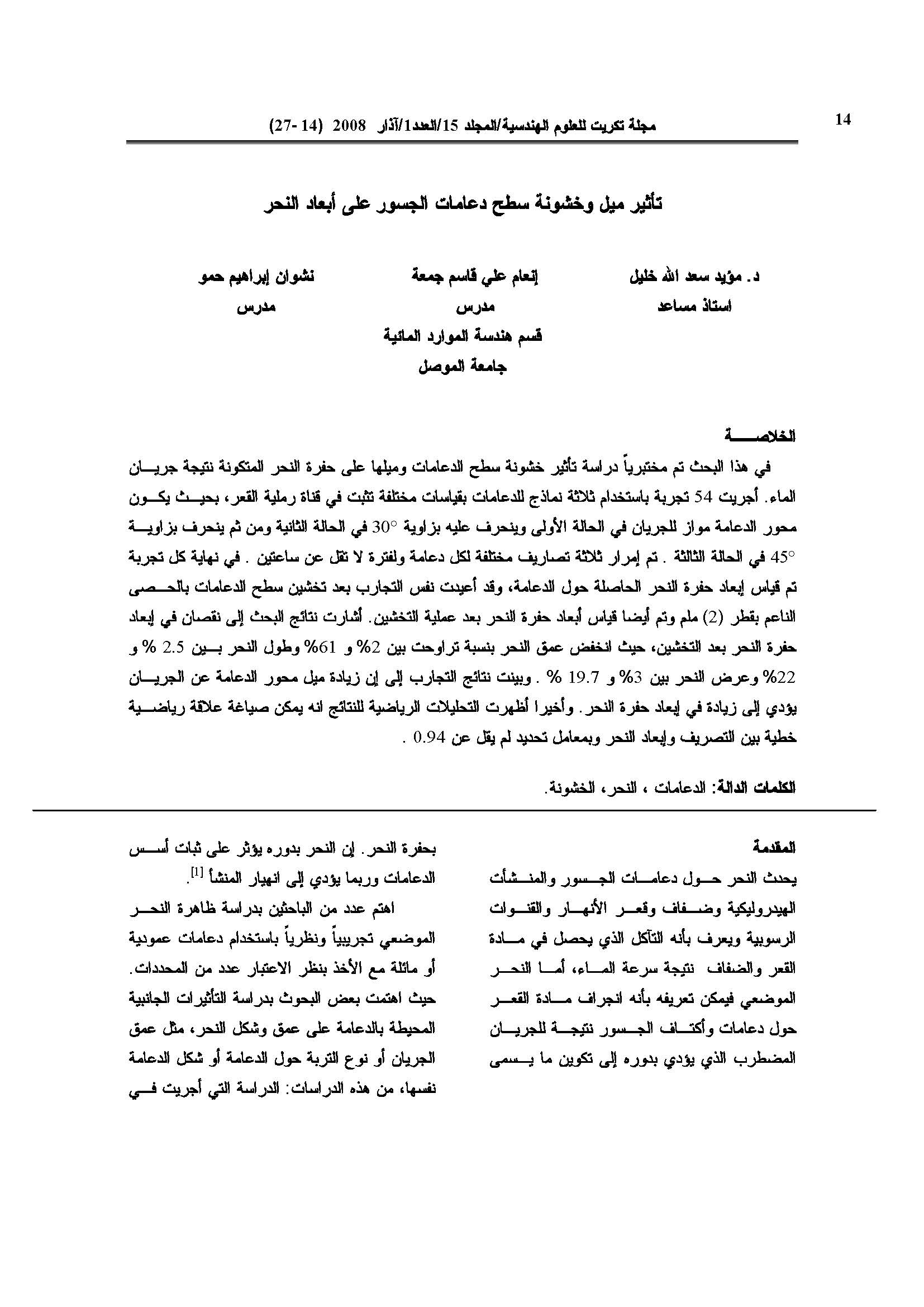 Bozkus, z.and Yildiz, U.” Effects of Inclination of Bridge Piers on Scouring Depth”, Journal of Hydraulic Engineering, ASCE, Vol. 130, No. 8, 827- 832, 2004. DOI: https://doi.org/10.1061/(ASCE)0733-9429(2004)130:8(827)