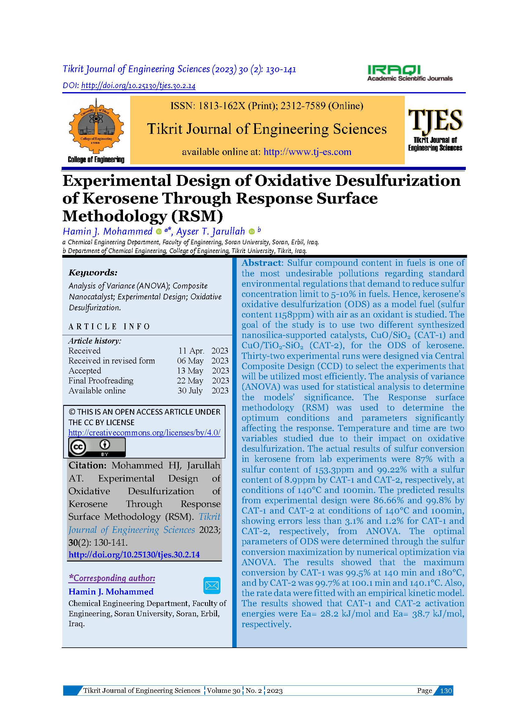 Experimental Design of Oxidative Desulfurization of Kerosene Through Response Surface Methodology (RSM)