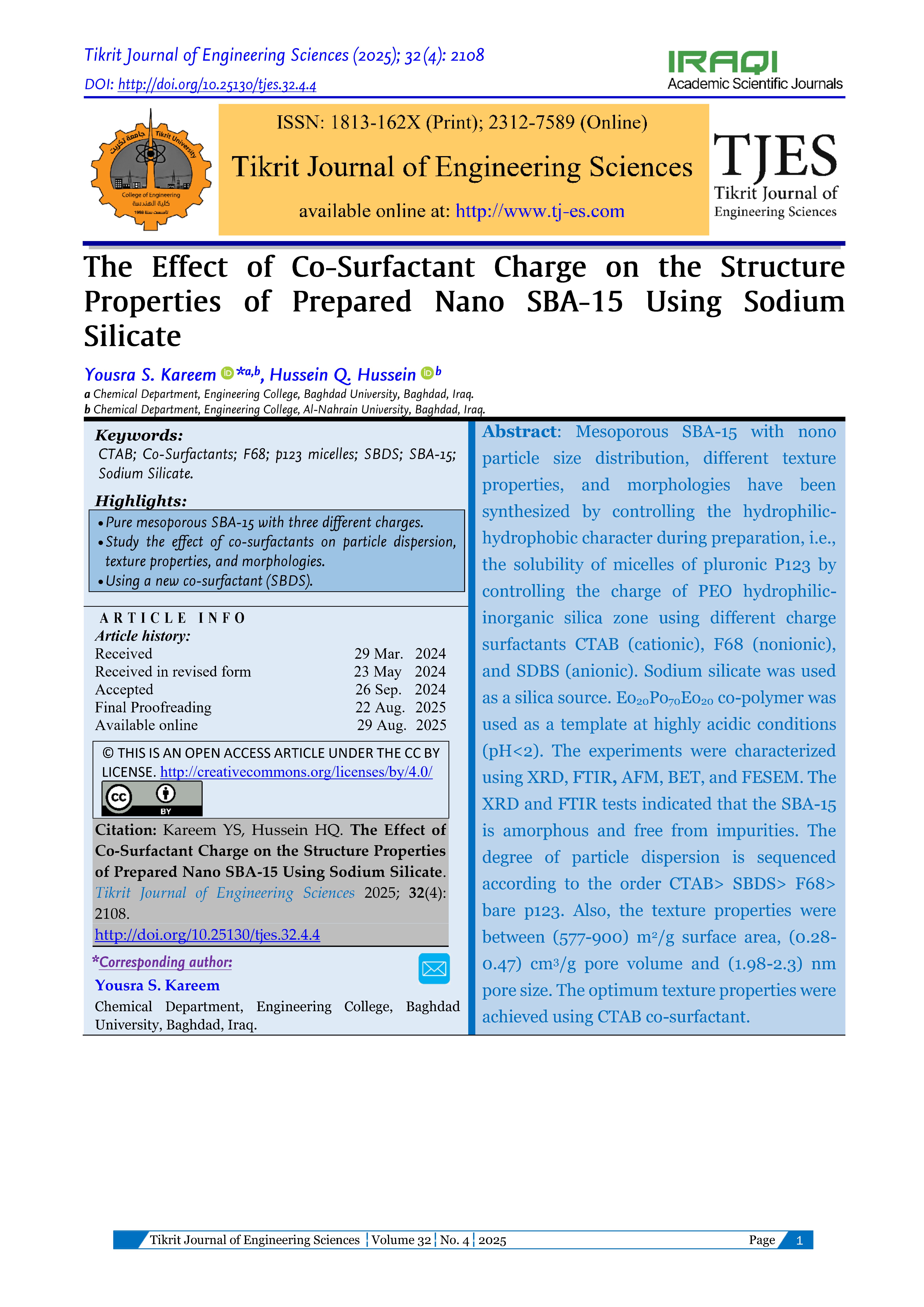 The Effect of Co-Surfactant Charge on the Structure Properties of Prepared Nano SBA-15 Using Sodium Silicate