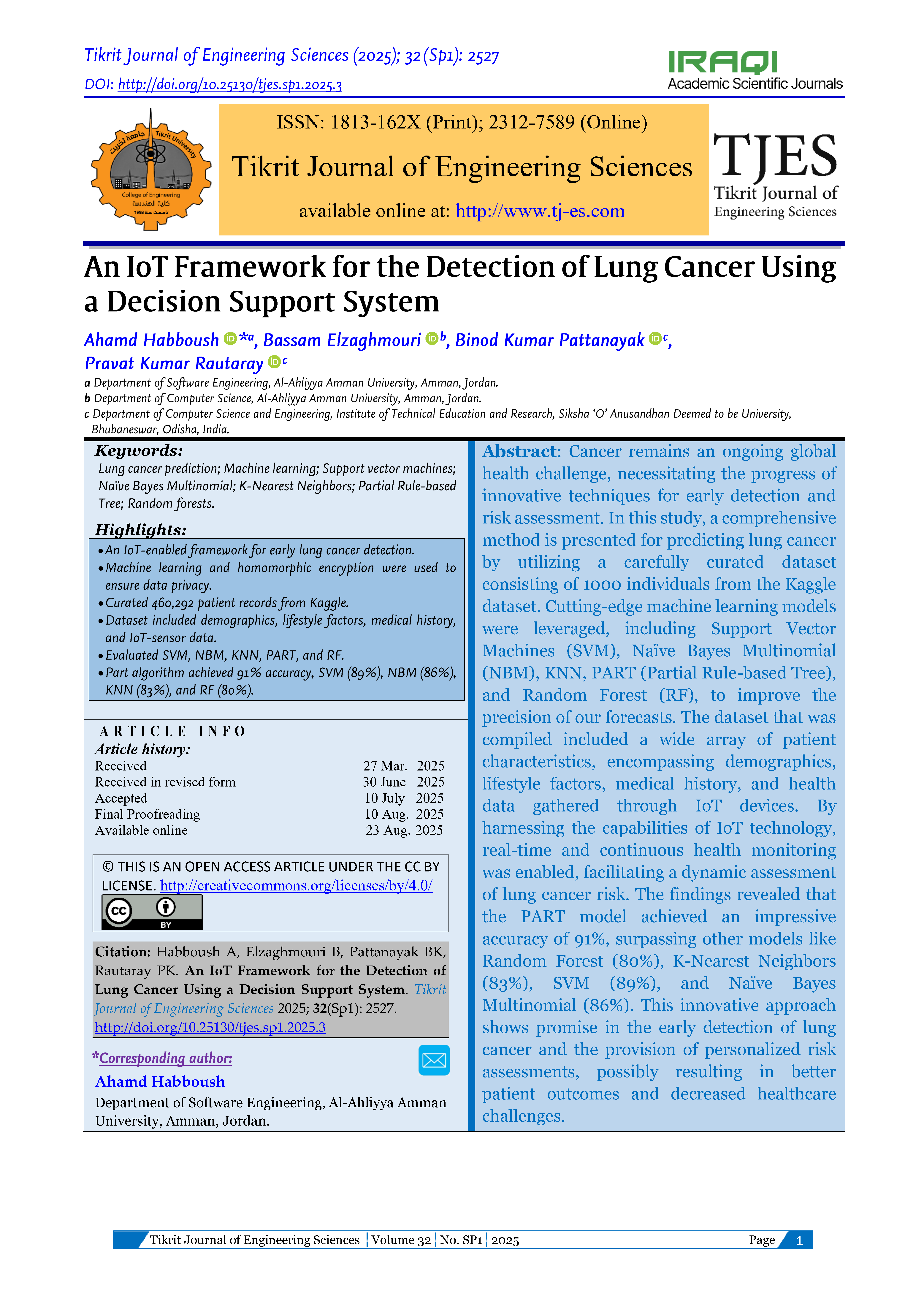 Ahamd Habboush, Bassam Elzaghmouri, Binod Kumar Pattanayak, Pravat Kumar Rautaray