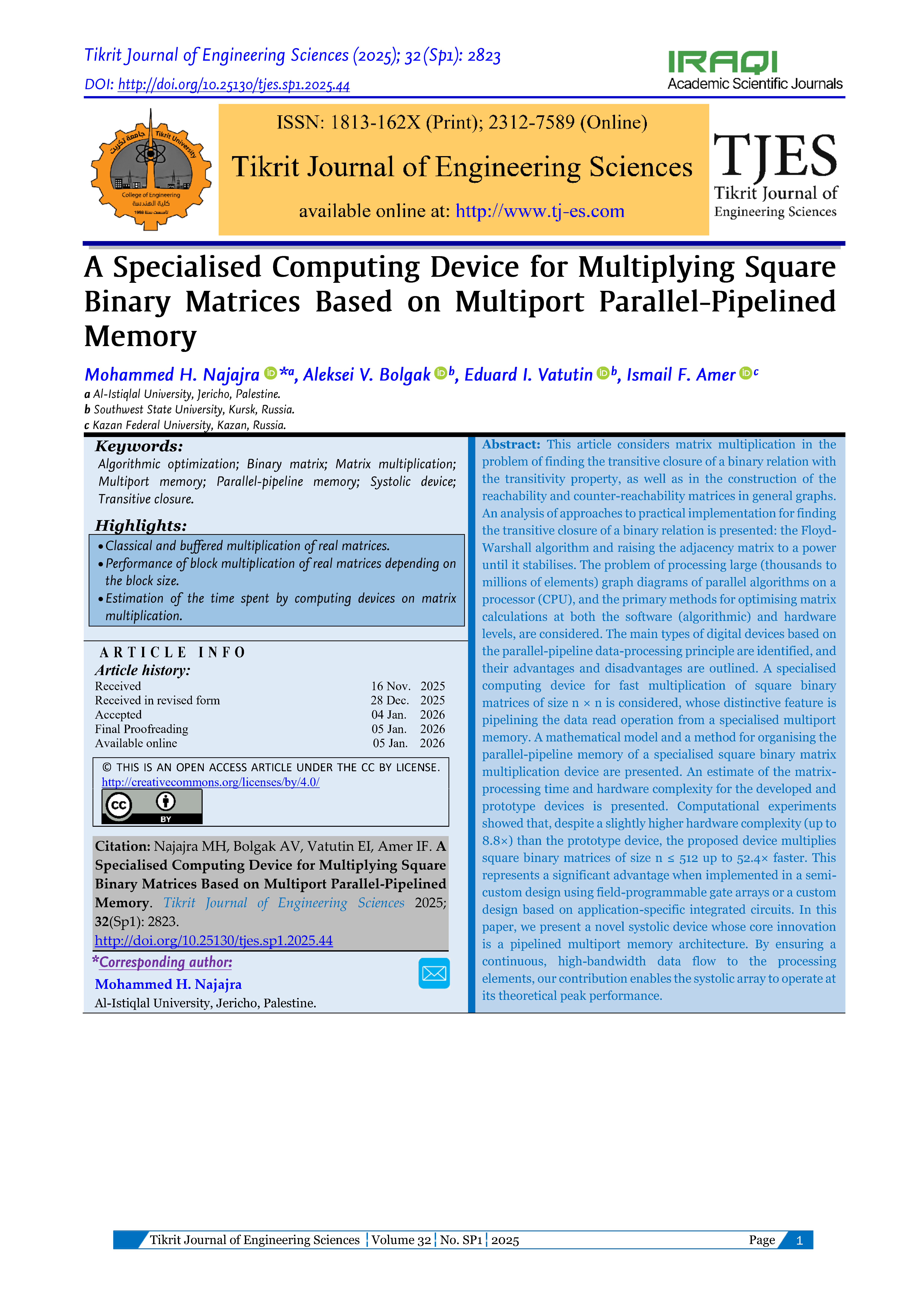 Mohammed H. Najajra, Aleksei V. Bolgak, Eduard I. Vatutin, Ismail F. Amer