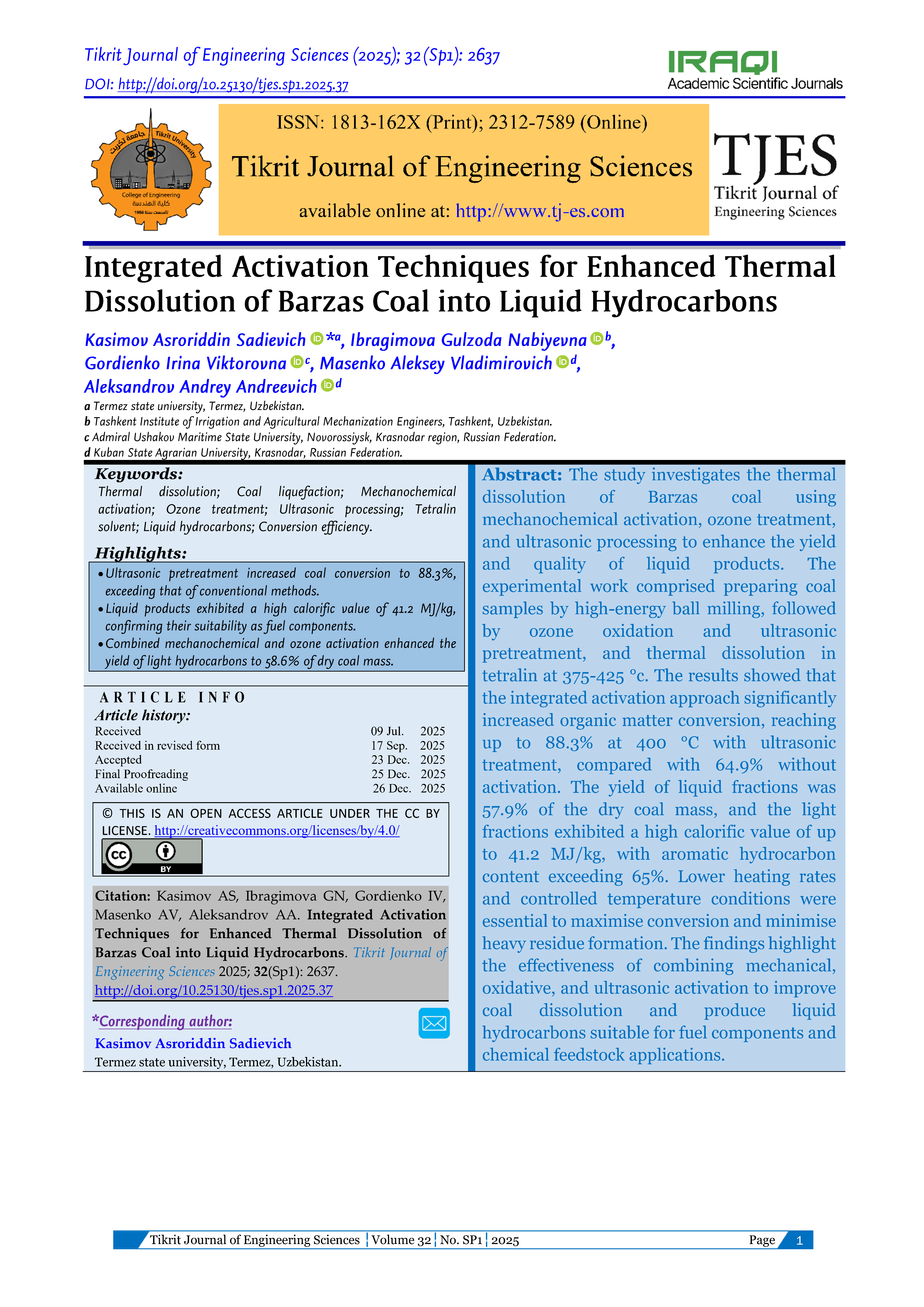 • Integrated Activation Techniques for Enhanced Thermal Dissolution of Barzas Coal into Liquid Hydrocarbons