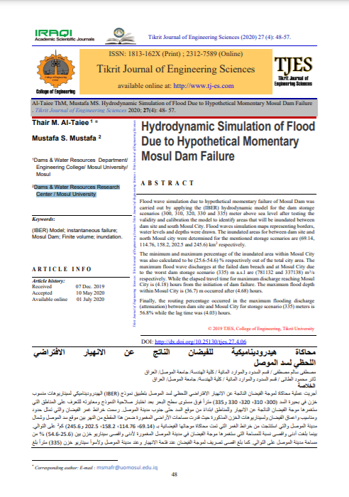 Hydrodynamic Simulation of Flood Due to Hypothetical Momentary Mosul Dam Failure
